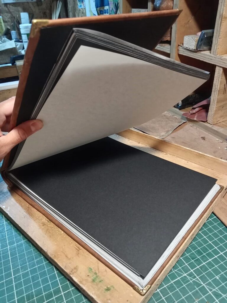 Álbum fotográfico con interior opalina negra sin óxido y papel mantequilla para obra visual o fotográfica